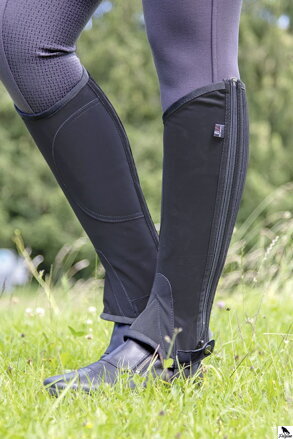 Použitie s obuvou: Noste ich s krátkou jazdeckou obuvou alebo poločizmami. Dlhé čižmy väčšinou nepotrebujú chapsy.